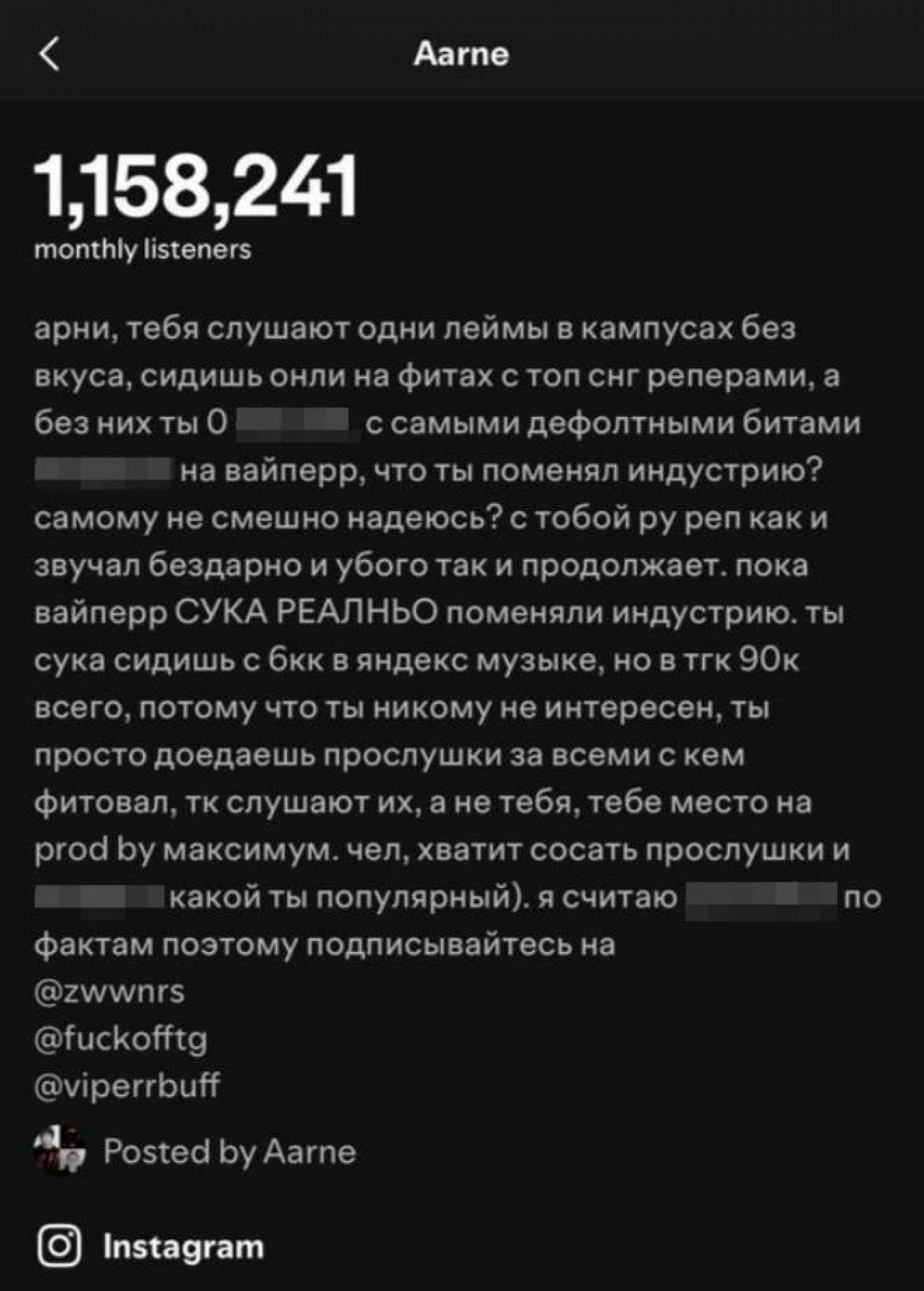 Отдельно вандалы поиздевались над профилем продюсера Aarne. В описании его страницы появилось обращение, в котором продюсера упрекают в паразитировании на популярных рэперах, которые участвовали в дилогии «AA Language».