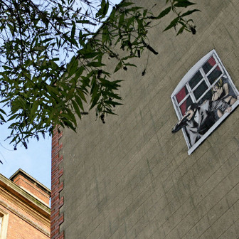Работу Бэнкси «Хорошо висящий любовник» продадут вместе со зданием, на котором она нарисована