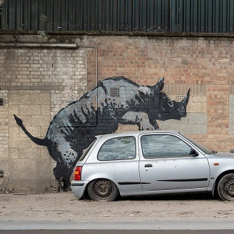 Бэнкси добавил носорога в коллекцию лондонских животных. Это восьмое граффити за август
