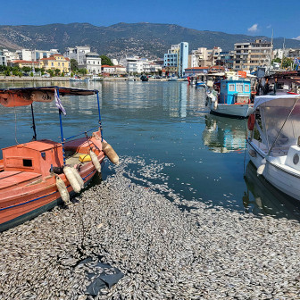В Греции городской порт затопило сотнями тысяч мертвых рыб