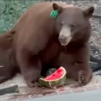 В Калифорнии медведь пробрался на участок и съел арбуз из холодильника