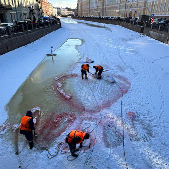 Коммунальщики стерли надписи «Ради любви» и «Перемен» на льду Мойки и Фонтанки в Петербурге