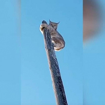 В Приморье пес погнался за рысью и загнал ее на столб