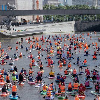 Около 3000 человек участвовали в заплыве на сапбордах по Москве-реке