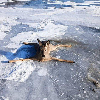 На Байкале косуля растянулась на льду. Ее вытащили спасатели
