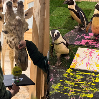 Зоопарк Нью-Йорка выставит на аукцион картины, нарисованные пингвинами и жирафом