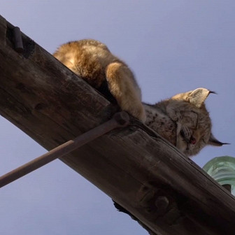 В Хакасии спасли рысь, которая уснула на столбе ЛЭП