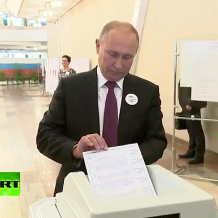 Путин только с третьего раза смог закинуть бюллетень в урну и превратился в мем