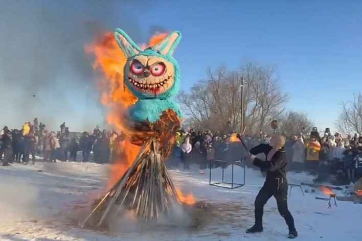 Гигантского Лабубу сожгли на масленице в Липецкой области