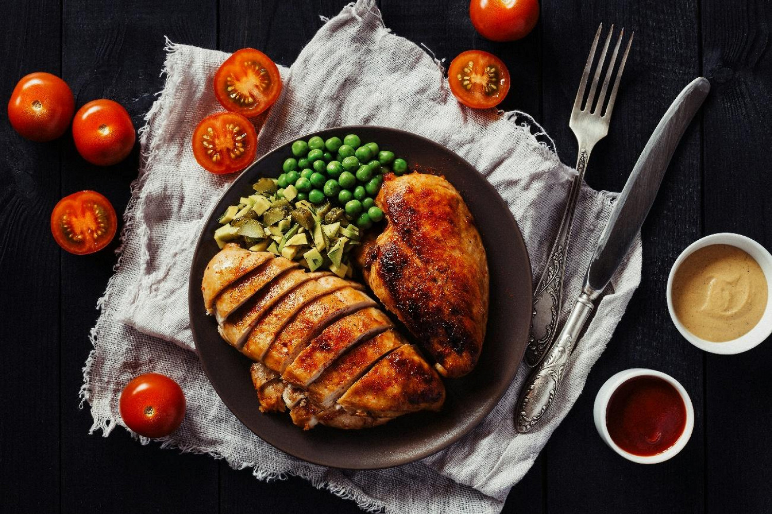 С теорией разобрались, теперь давайте перейдем к практике. Как получить на тарелке количество граммов белка, необходимое для вашего образа жизни? Продукт-фаворит в большинстве ПП-рецептов — куриная грудка. В 100 граммах запеченной куриной грудки содержится 31 грамм белка. Мы недаром уточняем, что именно в запеченной: содержание протеинов в мясе или рыбе зависит от способа приготовления. Например, в процессе жарки или запекания вода испаряется, и концентрация питательных веществ, включая протеин, на единицу веса увеличивается. А при варке, наоборот, может снизиться3,4.